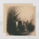 This square greeting card showcases a richly detailed, antique-style illustration of a haunted graveyard so evocative, it feels as though it were pulled straight from the crumbling pages of a forgotten Victorian ghost story. Rendered with ornate linework and shadowy depth, the scene depicts a creepy old cemetery filled with weather-worn tombstones, eerie crypts, crumbling angel statues, and twisted trees that reach out like skeletal hands against a brooding sky. There's a palpable stillness to the image, like the air just before a storm—or just before something stirs beneath the ground. It’s a perfect balance of sombre beauty and quiet dread, unmistakably gothic in tone and undeniably spooky in spirit.