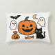Get into the Halloween spirit with our adorable accent pillow featuring cartoon ghosts, pumpkins, bat and more spooky elements. This decorative pillow adds a festive touch to any room during the Halloween season!
