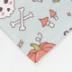 This design is a Halloween-themed pattern with a whimsical and playful design. The background colour is a soft pastel blue, and it is filled with various Halloween icons and symbols.