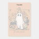 These adorable Halloween Post-it Notes feature a charming ghost in a witch's hat surrounded by beautiful flowers and a black cat perched on a pumpkin. The design is perfect for adding a touch of spooky whimsy to your planner, notebook, or desk. With a soft peach background and detailed illustrations, these notes are sure to delight. Personalise them with your name or a special message for a unique Halloween touch. Get ready for some ghostly fun this fall!