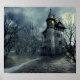 Spooky Halloween design. Haunted house on graveyard at night. Scary which castle.