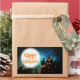 Stickers with spooky Halloween haunted house silhouette on a moonlit background with 'Happy Halloween' text which you can change for your own text.