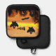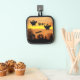 At Halloween time in the kitchen, safely handle baking trays, cookie sheets and muffin tins from the oven with this pot holder with black trim that features a spooky, scary image of flying ghosts and bat against an orange, evening sky. Select your pot holder backing style.