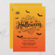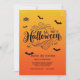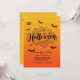 Invite your guests with this spooky Halloween design featuring pumpkins, bats, and cobwebs. The perfect way to set the mood for a night of fun and fright.