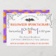 Spooky Halloween bat and decorative corner cobwebs with bright purple and orange watercolor pattern backing. Customise text font style, colour and size.