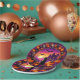 Add a touch of spooky charm to your Halloween celebrations with these vibrant paper plates! Featuring a whimsical design of carved pumpkins, black cats, and bats flying against a full moon, these plates are perfect for any Halloween party. The haunted house silhouette and ornate frame decorated with autumn leaves, skulls, and candles create a festive and eerie atmosphere. Made from high-quality materials, these plates are both durable and disposable, making cleanup a breeze. Ideal for serving snacks, desserts, or main courses, they will surely delight your guests and add a festive flair to your table setting.