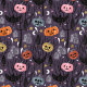 Halloween wrapping paper featuring a pattern filled with jack-o'-lanterns, bats, ghosts, and tombstones. Perfect for wrapping party favours or October birthday gifts. Original artwork by Marketa Stengl.