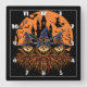 Spooky Halloween scarecrow trio at twilight Square Wall Clock