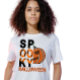 This festive t-shirt boldly spells out "SPOOKY" with the letters cleverly filled and outlined in classic Halloween colours. A grinning jack-o'-lantern forms a prominent part of the design, alongside the inviting word "HALLOWEEN" at the bottom. It's the perfect shirt to show your excitement for all things eerie and fun this spooky season!
