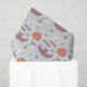 This design is a Halloween-themed pattern with a whimsical and playful design. The background colour is a soft pastel blue, and it is filled with various Halloween icons and symbols.