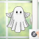 Spooky and Cute Ghost on a Window Cling for Halloween night.