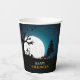 Spooky haunted graveyard with bats and evil pumpkins and big white moon. Happy Halloween