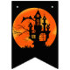 These Halloween flags feature a creepy black haunted house, silhouetted against a huge, orange full moon, with a giant flying bat and a creepy dead tree behind it.
