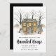 Celebrate your move in seasonal style with this cute and spooky Halloween moving announcement. The design features a watercolor haunted house accented by jack-o’-lanterns, ghosts, tombstones, and a backdrop of eerie trees. Personalize with your family name and new address to create a festive keepsake. Perfect for letting friends and family know your new “haunted” home during the Halloween season.