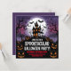 Set the perfect eerie tone for your Halloween party with this spooky haunted house invitation! Featuring a dark, haunted mansion under a full moon, glowing jack-o'-lanterns, flying bats, and foggy trees, this invitation is ideal for a ghostly, spine-chilling event. Personalize with your party details and invite guests to a spooktacular night of fun