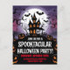 Set the perfect eerie tone for your Halloween party with this spooky haunted house invitation! Featuring a dark, haunted mansion under a full moon, glowing jack-o'-lanterns, flying bats, and foggy trees, this invitation is ideal for a ghostly, spine-chilling event. Personalize with your party details and invite guests to a spooktacular night of fun