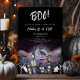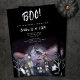 This spooky Halloween party invitation features a black background with watercolor illustrations of a haunted house, witch, and ghosts on the front. The typography is simple and modern. On the back you will find the same haunted house scene. Further customise this design by adding a photo and/or more text to the back!