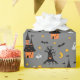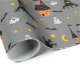 A playful haunted house pattern featuring spooky castles, glowing ghosts, creepy trees, bats, and crescent moons on a grey backdrop. This Halloween wrapping paper is ideal for party favours, October birthdays, trick-or-treat gifts, or festive seasonal surprises.