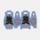 A fun Favour Box with a Halloween theme. The background colour is a ghoulish grey-blue. On the front and back of the box, there's a silhouette of a house with pumpkins. On the sides of the box there's a spider with a label that reads, "TRICK OR TREAT". This text can be customised.