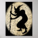 Spooky! This unique hunched witch on an aged text background is sure to spruce up your Halloween decor.