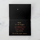 A Halloween card with a spooky black and orange silhouette taken from outside a house at night.. Text reads "Join us for a Spooky Halloween Night" Inside text Time Place "In the Dungeon" Address and Phone No to reply .Bat image on the back of card whitch reads "Spooky"