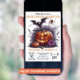 Introducing our customisable Halloween-themed birthday party invitation! The design features a playful and spooky graphic style. The central design showcases a grinning jack-o’-lantern with triangular eyes and a toothy smile, flanked by one smaller pumpkin and a purple flower. Bats in mid-flight hover above the pumpkin, adding to the eerie atmosphere. The text is fully customisable. If you are looking for a fun and Halloween-thematic party invite, this one is perfect for you!