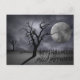 A scary Halloween illustration: Spooky landscape by night with the full moon, clouds and a dark tree silhouette with a hanging spider.