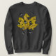 Weird creepy Halloween sweatshirt with botanical art of a yellow leaf and strange spooky eyes behind it.