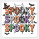 Make your Halloween extra festive with this bold and colourful word art featuring the word “Spooky” repeated in eye-catching patterns and colours. Fun details like a witch hat and flying bats give it the perfect seasonal flair.Bold Halloween Word Spooky Lettering with Witch Hat and Bats