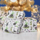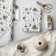 Spooky Halloween wrapping paper features a pattern of bubbling cauldrons, potions, witches' hats, black cats, crows, and crystal balls.