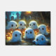 Little cute spirits sitting together listening to a spooky story in the cemetery at night.