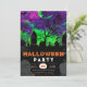 Get ready for a Halloween party that’s both spooky and vibrant with this eye-catching invitation! The top half of the design features a creepy cemetery scene under a dramatic crescent moon, set against a neon pink, purple, and green sky. The grey sky is dotted with stars and bats, adding an eerie yet colourful backdrop that brings the Halloween spirit to life.