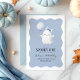 Spooky One! Boy's 1st birthday invitation featuring cute ghost with blue balloon on a wavy background. The perfect halloween themed first birthday invitation for your little ones birthday party!