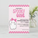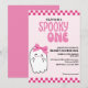 Introducing our "Spooky One Cute Ghost retro girl pink Birthday Invitation" – the perfect blend of adorable and eerie for your little one's milestone celebration! This invitation features a charming ghost character with pink bow in a soft pink hue, designed to capture the whimsical spirit of a first birthday party with a playful, spooky twist