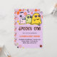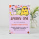 Spooky one Ghost Purple Groovy Halloween 1st birthday Invitation : This Halloween 1st birthday invitations in purple and orange with theses cute ghost, bat, spider, spider web & groovy flowers, retro typography, is for kids / children (baby girl). (ex: Spooky one. Join us for the spooktacular Alexandra's first birthday XXXXX October XX... )This halloween first birthday invitation is great for spooky birthday / groovy baby / groovy birthday / floral halloween. You can personalise this girly halloween birthday party invites with all your informations. Perfect for halloween 1st birthday invites, halloween first birthday invitations, 1st birthday party, halloween first birthday, girl birthday party, october birthday, girl 1st birthday... HALLOWEEN THEME ( 70s, seventies, peace and love, hippie, the spooky one birthday invitations, spooky one birthday )