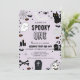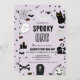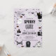 Cute purple Halloween theme girl's birthday party invitation card with images of a ghost, black cat, spider, bat, candies, candles, spider, and pumpkins. "Spooky On Spooktacular Halloween Ghost Birthday Invitation! Easily PERSONALIZE this design with your details!" states the text. If you require MATCHING ITEMS, please see our matching collection or shop.