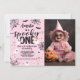 A perfect blend of pink, white, and black, with cute ghost motifs. This invitation sets the tone for a charmingly spooky celebration that's all about our little one's big milestone. The playful design captures the essence of Halloween while adding a touch of adorable to the festivities. Get ready to invite friends and family to a memorable day filled with smiles, costumes, and delightful surprises. Customize it with youe own photo. Version without picture is also available in our shop.