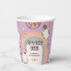 Retro Spooky One Halloween 1st Birthday Party Paper Cups- Let's get Groovy! Design features a colourful background with a boho rainbow. Cool retro illustrations decorate the simple template with adorable hippie ghosts, skull flowers, spooky disco ball and spooktacular candy.
