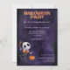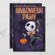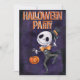 Delightfully spooky, creepy and cute dancing skeleton to welcome your guests to a Halloween costume party. Fall October colours: :orange, purple and black. Modern typography style with your own party details. Perfect for trick or treater of all ages.