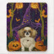 Spooky Pekingese Dog Halloween Witch And Pumpkin Mouse Pad