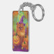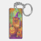 Spooky Pomeranian Dog Halloween Witch And Pumpkin Key Ring