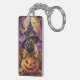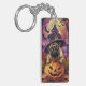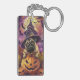 Spooky Pug Dog Halloween Witch And Pumpkin Key Ring