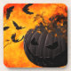 Spooky pumpkin and bats illustration coaster