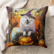 Spooky Samoyed Dog Halloween Witch And Pumpkin Cushion