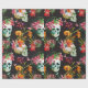Spooky scary skulls with flowers Halloween Wrapping Paper