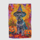 Spooky Schnauzer Dog Halloween Witch And Pumpkin Golf Towel