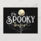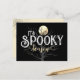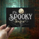 This design features the phrase "It's Spooky Season", along with the image of a bare tree and full moon. The back of the card includes a simple "Happy Halloween" greeting with a spiderweb in the top left corner. All of the fonts, images, and text may be customized, as well as the background colors.