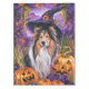Spooky Shetland Sheepdog Halloween Witch Pumpkin Tablecloth