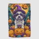 Spooky Shih Tzu Dog Halloween Witch And Pumpkin Golf Towel