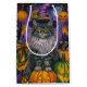 Spooky Siberian Cat Halloween Witch And Pumpkin Medium Gift Bag